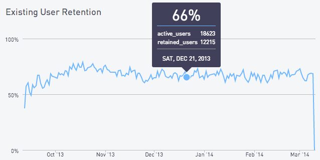 As expected, existing user retention is higher than the overall average: 66% vs. 46%.